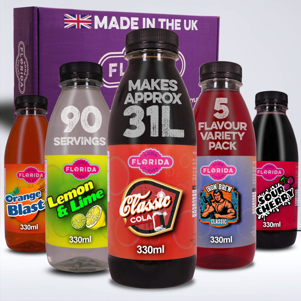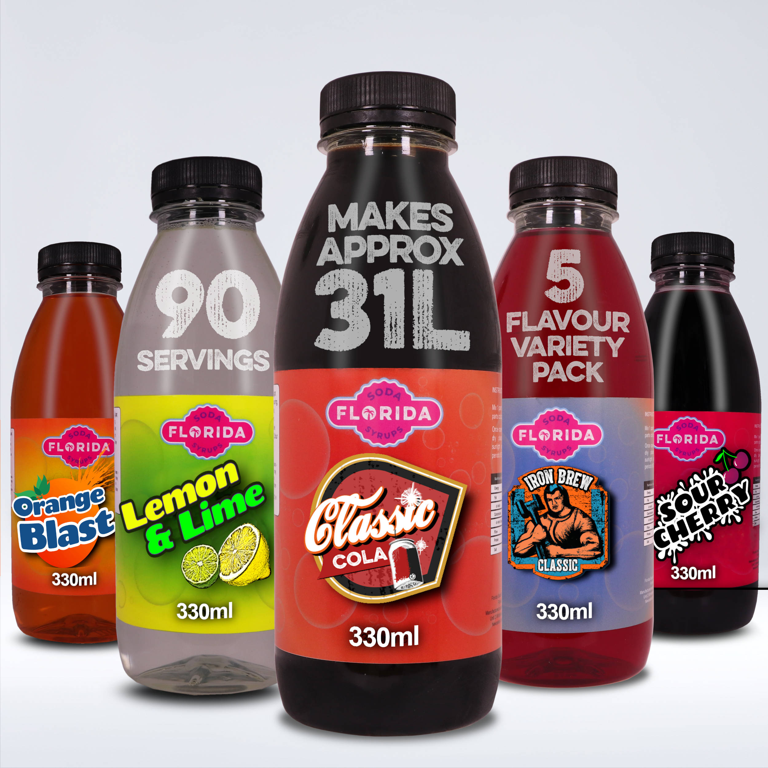 Refresh your taste buds with our range of Classic Cola, Lemon & Lime, Orange Blast, Iron Brew, and Sour Cherry syrups! Crafted for Sodastream machines, these 330ml bottles offer flavour-packed goodness and an alternative to standard options.